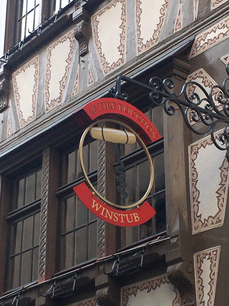 We ate at a traditional “winstub” and it did not disappoint. Winstub is a type of bistro that serves traditional Alsatian cuisine. Patrons eat in a casual, homey atmosphere at tables draped with red chequered tablecloths. Our choice was Le Tire Bouchon and it did not disappoint.
