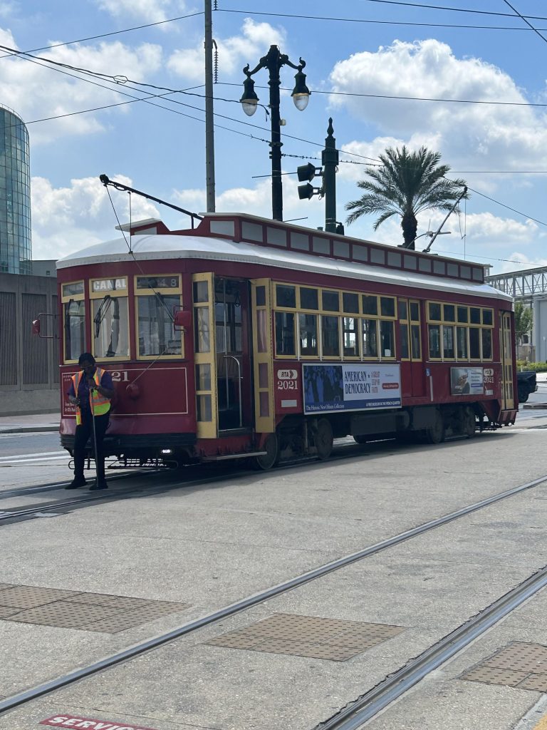 My number one choice for exploring any city is donning my favorite walking shoes and exploring. NOLA is no different. The sidewalks and pavement, however, are not in the best shape and are hard on your feet, so make sure to bring comfortable shoes. There is another way to get around, although limited in where it goes: