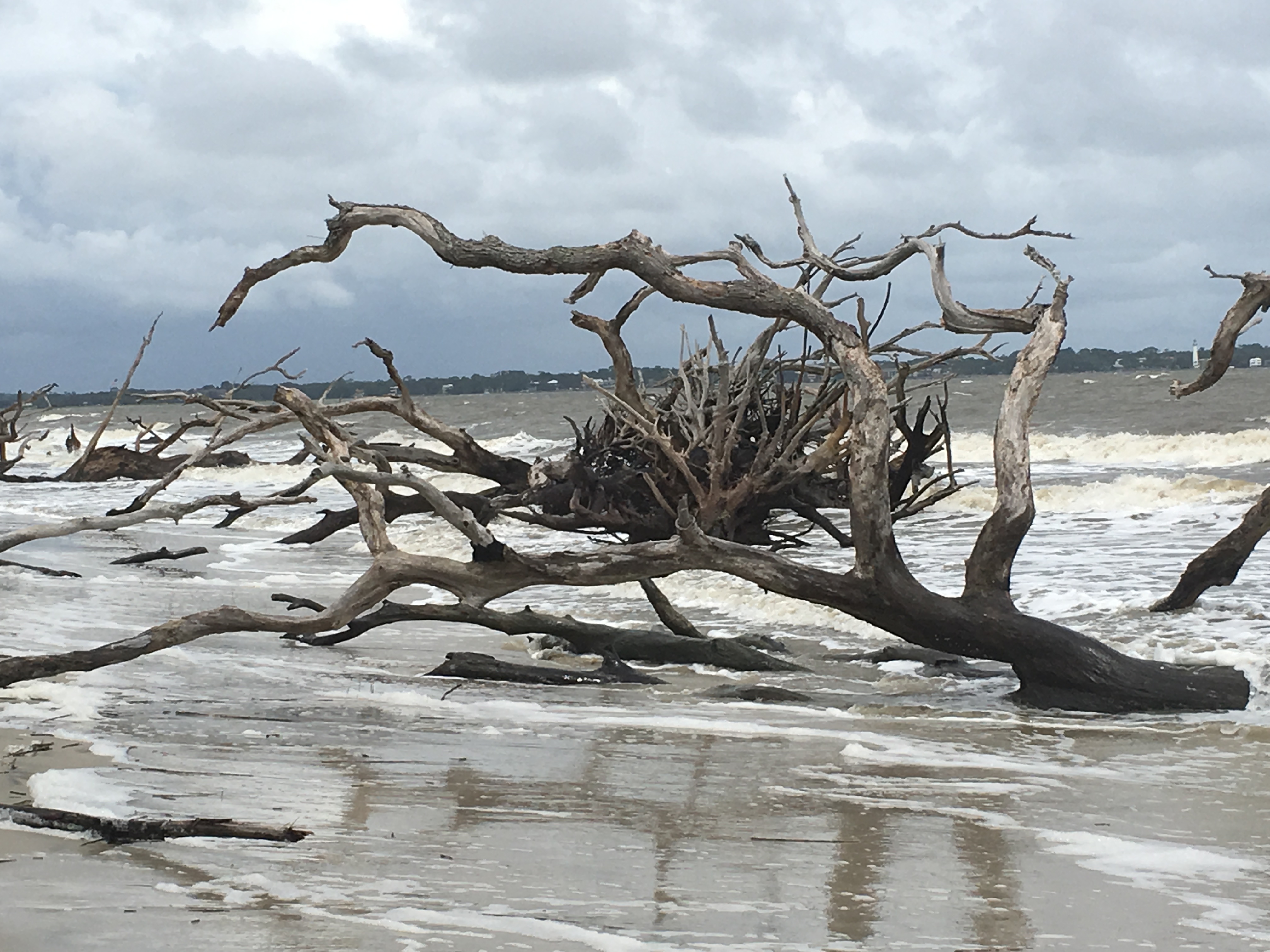 Visiting Driftwood Beach was on our to do list. Created by constant erosion, this surreal landscape of bleached and preserved fallen trees is like none other we’d seen before.