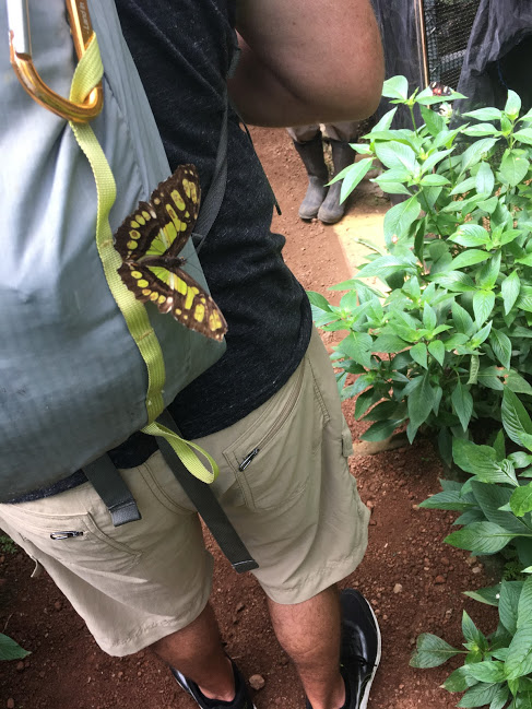 Our morning started off with a visit to the Butterfly Conservatory where we got to walk among the butterflies and learn about the different types. As you can see, one butterfly seemed to take a liking to my husband!