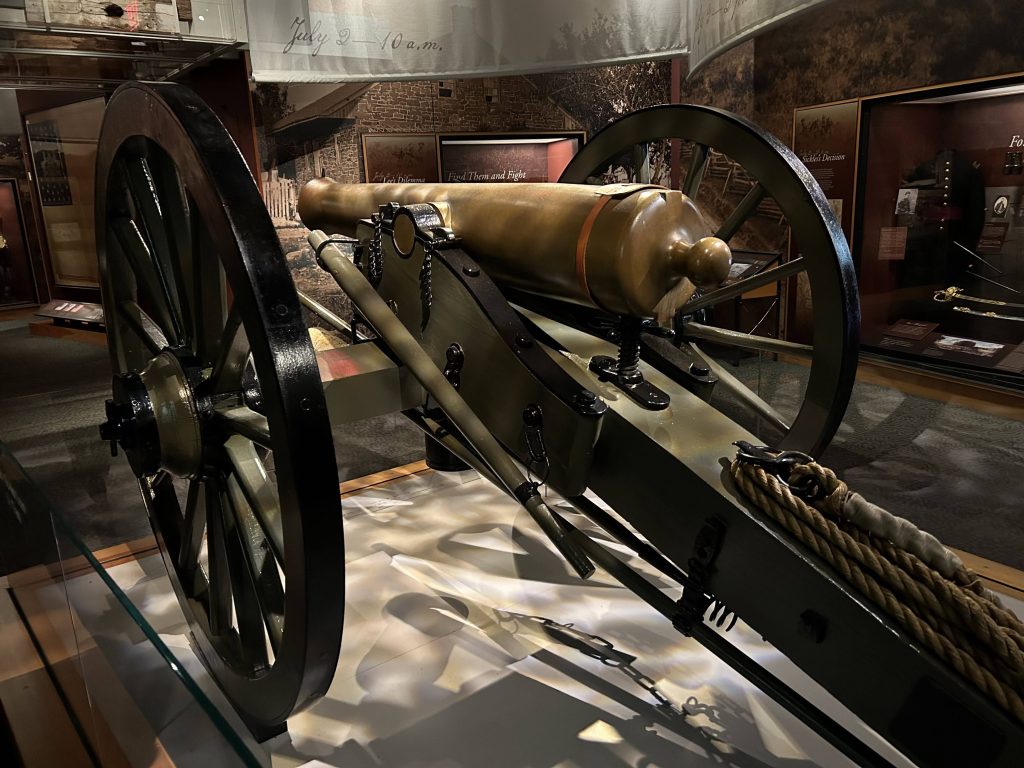 After our walk, we drove over to the Gettysburg Military Park Visitor’s Center and Museum, the must-see first stop when exploring the battlefield. Rangers and volunteers man the center, providing important information, including maps, tours, and more, that you may need to make the most of your visit. Keep in mind that this is a relatively small city and the distances between sites are very doable.