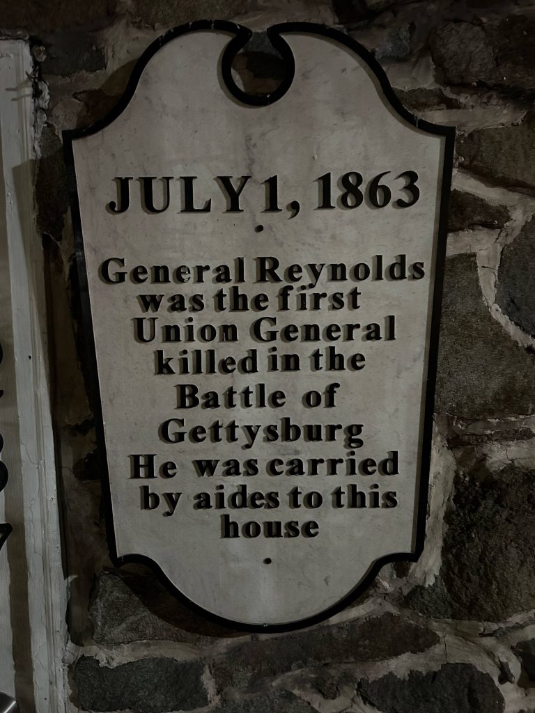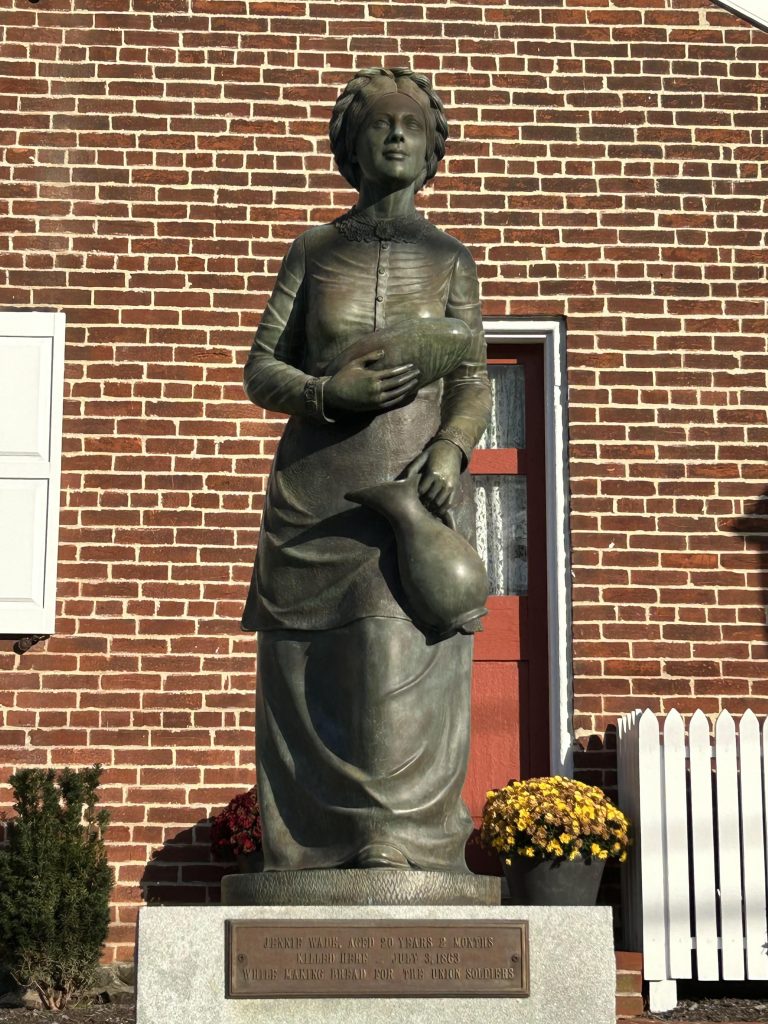 After our four hour drive from home, we arrived in downtown Gettysburg and had a delicious lunch at Food 101. We walked around, taking in the quaint town with its shops, restaurants, Gettysburg College, and the house of Jenny Wade, the only civilian killed in this battle.
